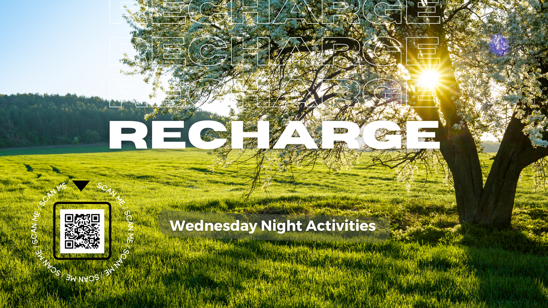- Recharge Spring Semester kicks off tomorrow night! You can sign up for classes and also view all of our Wednesday Night Activities by clicking HERE.